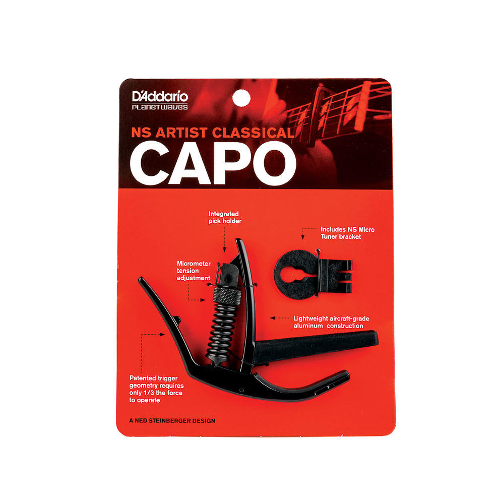 Capotraste D’Addario PW-CP-13 Artist Classical: desenvolvido para o uso em violões de nylon com escala reta (flat). Todos os capos da série Artist utilizam um gatilho de geometria patenteada que reduz a força necessária para abrir e fechar o capo e oferece a tensão ideal ao braço do instrumento. Com o parafuso micrométrico, que faz pressão horizontal direta, o Capo Artist impede o movimento indesejado das cordas para que você não precise corrigir a afinação. Seu design de gatilho frontal e a construção em alumínio extra-leve resultam em um capo de fácil utilização e que não atrapalha ao tocar. Possui um suporte integrado para palhetas e afinador Micro.