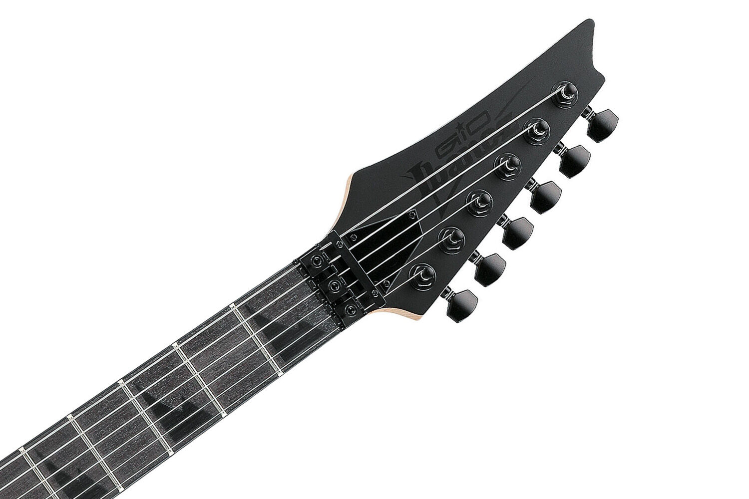 Guitarra de 6 cordas Ibanez RG Series modelo RG GIO GRGR330EX-BKF, corpo em Poplar e acabamento Black Flat (Preto Fosco), ponte Double Locking com trêmolo e captação Infinity.
