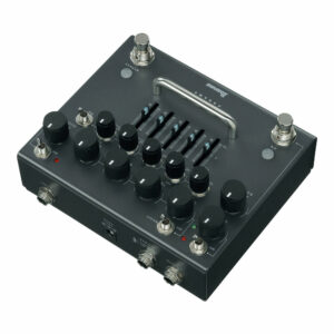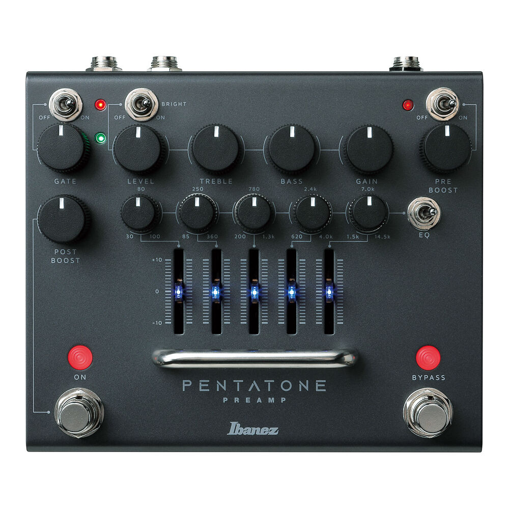 | Chaves | liga/desliga de acionamento do PRE BOOST, liga/desliga BRIGHT, liga/desliga EQ paramétrico de 5 bandas, liga/desliga Noise GATE, switch de acionamento de BYPASS, switch de acionamento do POST BOOST |
