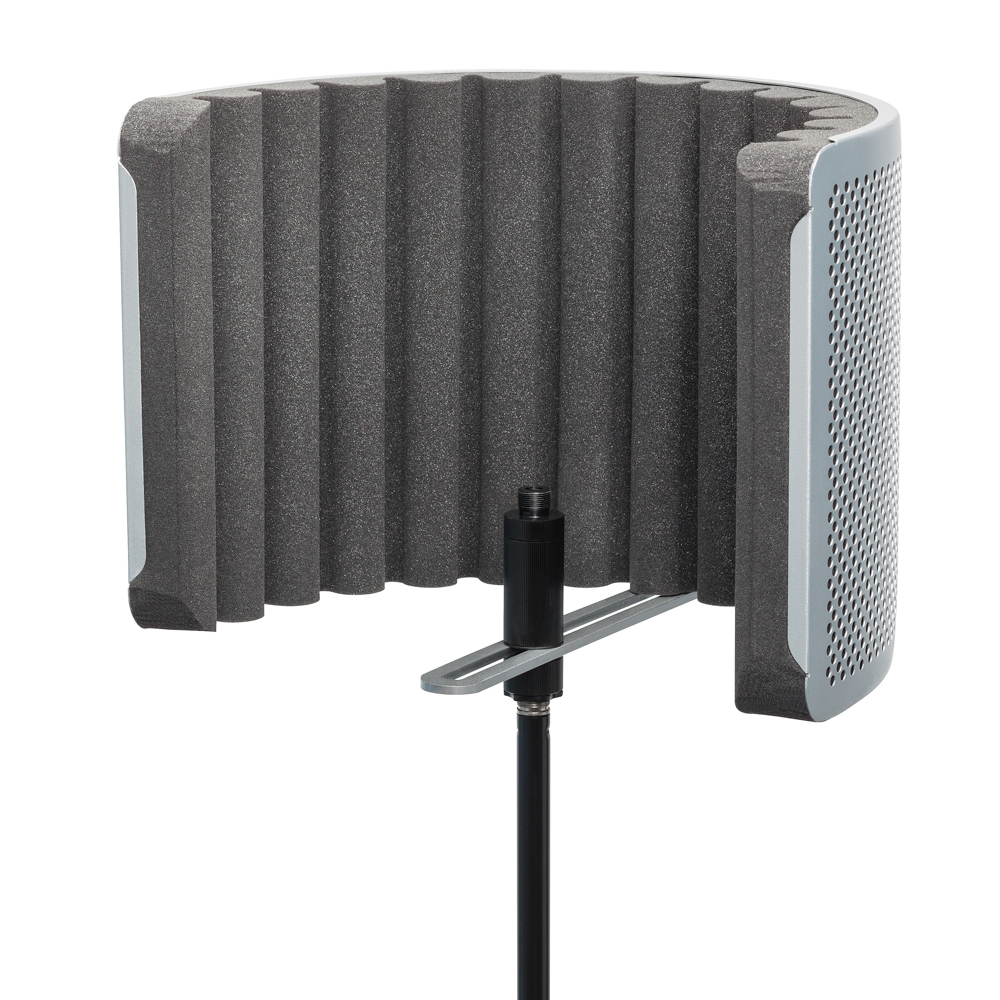 “O Filtro de Reflexão RC10 funciona com o seu microfone para transformar qualquer espaço de gravação em casa ou no estúdio em uma cabine de voz profissional. Apresentando construção de painel único com interior de espuma acústica padrão da indústria e moldura de alumínio, o RC10 rejeita ruídos indesejados da sala e reflexos fora do eixo, resultando em gravações claras e nítidas. Usado principalmente para vocais, o RC10 é extremamente versátil e pode beneficiar situações de gravação que envolvem guitarras, bateria e outros instrumentos. O leve RC10 é extremamente portátil, permitindo que você capture ótimas gravações em qualquer lugar, bem como ajustável, com seu mecanismo de montagem de aço oferecendo até 16,5cm de alcance vertical. O hardware de montagem incluso se conecta facilmente a clipes de microfone padrão (rosca superior) e suportes (rosca inferior), o que também permite até 20cm.
